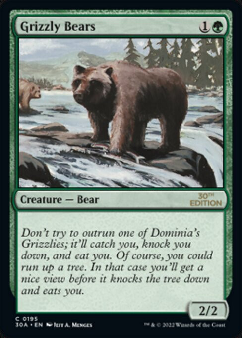 "Don't try to outrun one of Dominia's Grizzlies; it'll catch you, knock you down, and eat you. Of course, you could run up a tree. In that case you'll get a nice view before it knocks the tree down and eats you."