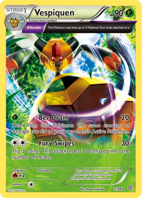 Its abdomen is a honeycomb for grubs. It raises its grubs on honey collected by Combee.