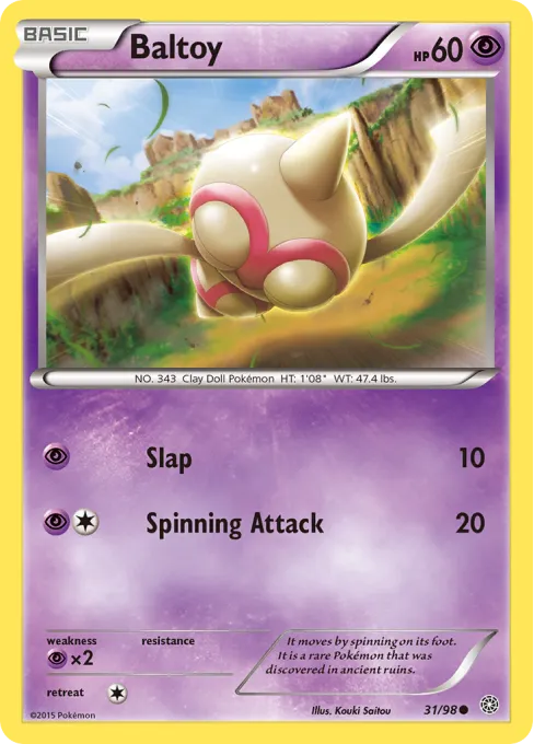 It moves by spinning on its foot. It is a rare Pokémon that was discovered in ancient ruins.
