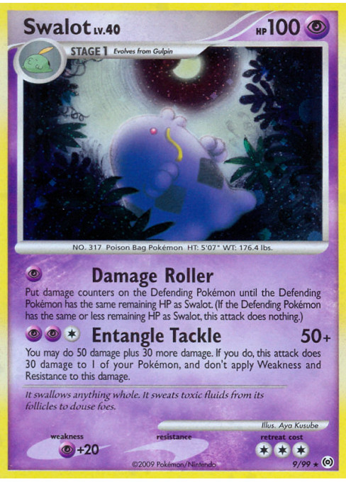 Put damage counters on the Defending Pokémon until the Defending Pokémon has the same remaining HP as Swalot. (If the Defending Pokémon has the same or less remaining HP as Swalot, this attack does nothing.)
