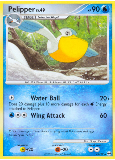 Does 20 damage plus 10 more damage for each Water Energy attached to Pelipper.