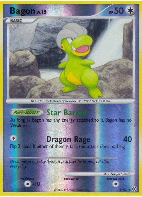As long as Bagon has any Energy attached to it, Bagon has no Weakness.