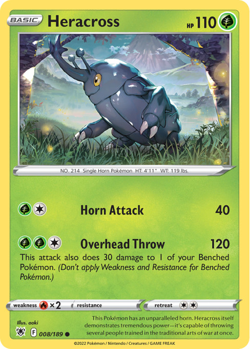 This Pokémon has an unparalleled horn. Heracross itself demonstrates tremendous power—it's capable of throwing several people trained in the traditional arts of war at once.