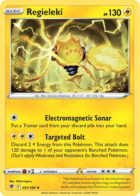 This Pokémon is a cluster of electrical energy. It's said that removing the rings on Regieleki's body will unleash the Pokémon's latent power.