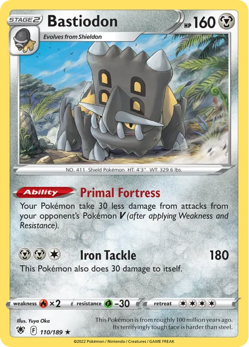 This Pokémon is from roughly 100 million years ago. Its terrifyingly tough face is harder than steel.