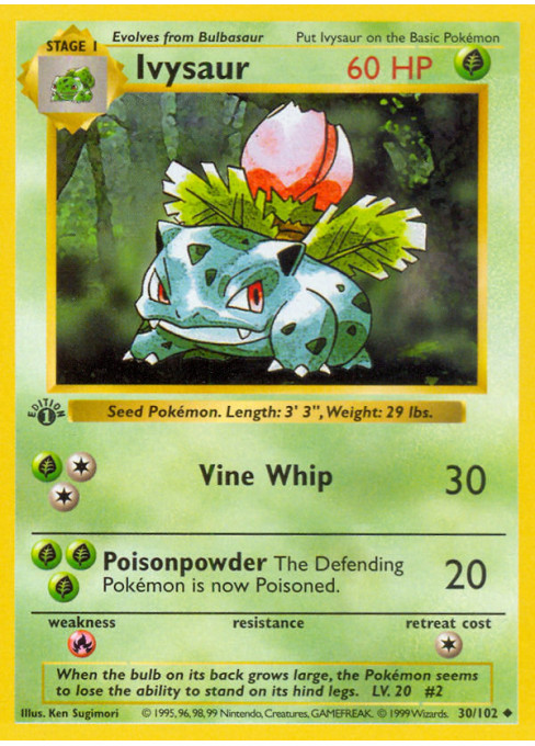 When the bulb on its back grows large, the Pokémon seems to lose the ability to stand on its hind legs.