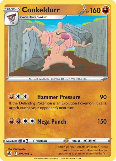 When going all out, this Pokémon throws aside its concrete pillars and leaps at opponents to pummel them with its fists.
