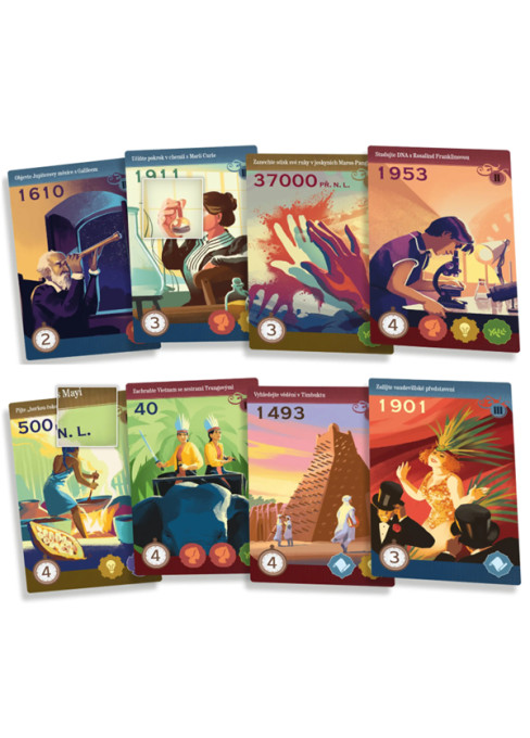 Hra obsahuje více než 100 karet historie, z nichž každá je krásně ilustrovaná a doplněná poučnými texty, které popisují rozmanité a úžasné dějiny našeho světa. Součástí balení je i krásná neoprenová podložka (playmat) coby hrací plán.