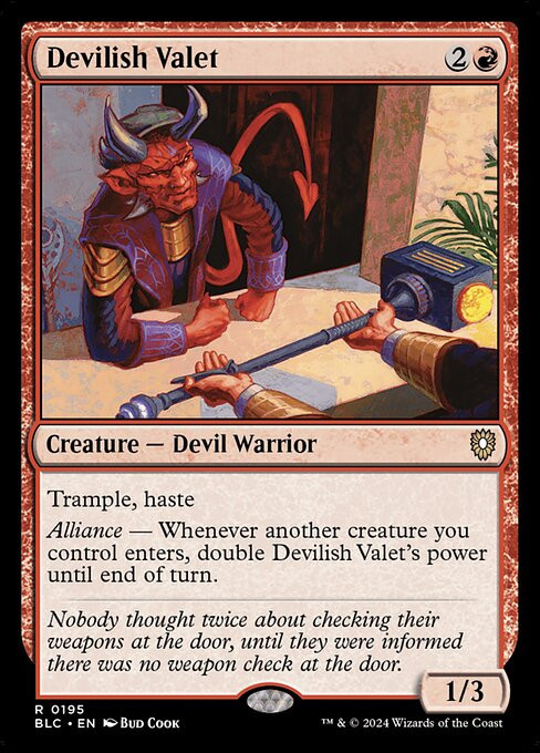 Alliance — Whenever another creature you control enters, double Devilish Valet's power until end of turn.