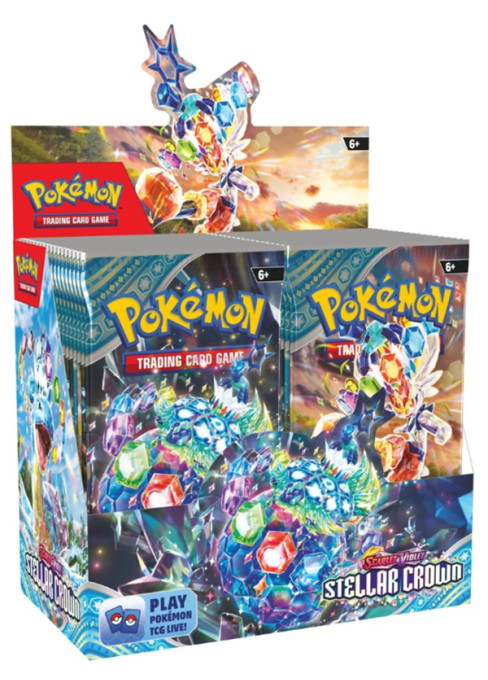V rozšíření Scarlet & Violet – Stellar Crown budete mít možnost využít fenomén Terastal, který jste poprvé zažili ve videohrách Pokémon Scarlet a Pokémon Violet. Tímto způsobem se do karetních her Pokémon TCG dostávají Stellar Tera Pokémon ex. Každý Pokémon ex Stellar Tera bude mít unikátní hvězdný útok, jehož názvy budou inspirovány různými drahokamy, a jehož aktivace si vyžádá tři různé typy energie. Navíc se v nadcházejícím rozšíření objeví také jedinečné ilustrace, které zachycují krystalické vlastnosti pokémonů Stellar Tera ex.