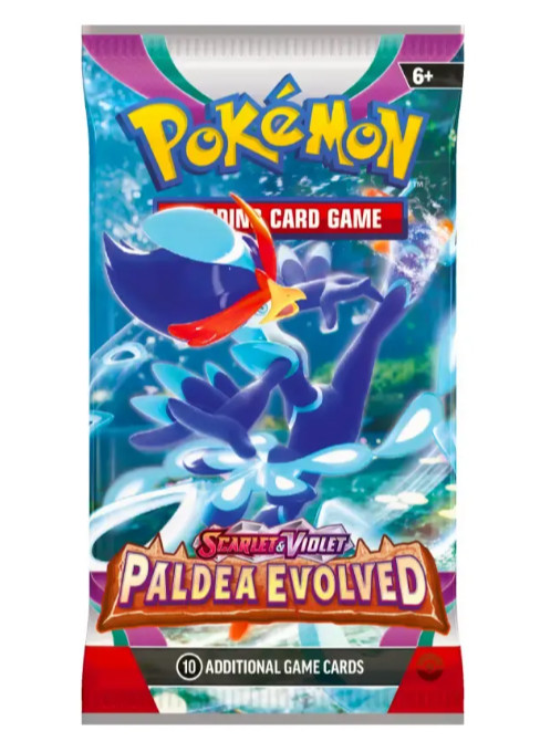 Paldea Evolved obsahuje tři poslední evoluce prvních partnerských pokémonů Paldey, Meowscarada, Skeledirge a Quaquaval, a také poklady zkázy. Sada spojuje tři japonská rozšíření Triplet Beat, Snow Hazard a Clay Burst a obsahuje také karty z ex Starter Set Pikachu ex & Pawmot Standard Deck a Premium Trainer Box ex.