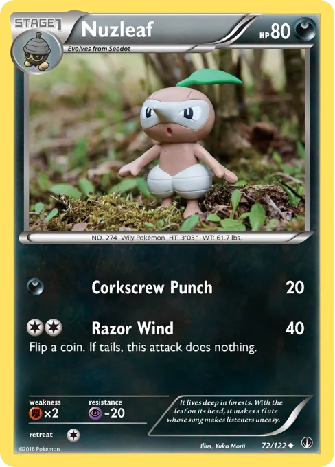 It lives deep in forests. With the leaf on its head, it makes a flute whose song makes listeners uneasy.
