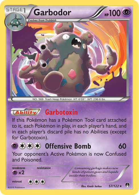 If this Pokémon has a Pokémon Tool card attached to it, each Pokémon in play, in each player's hand, and in each player's discard pile has no Abilities (except for Garbotoxin).