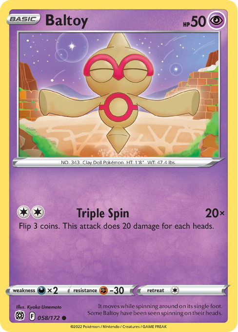 It moves while spinning around on its single foot. Some Baltoy have been seen spinning on their heads.