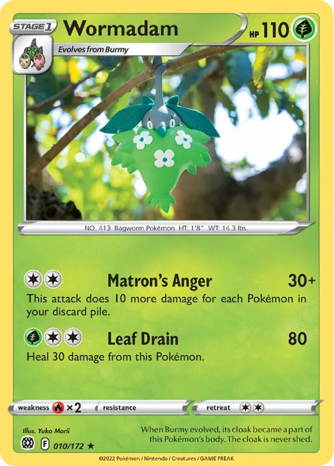 When Burmy evolved, its cloak became a part of this Pokémon's body. The cloak is never shed.