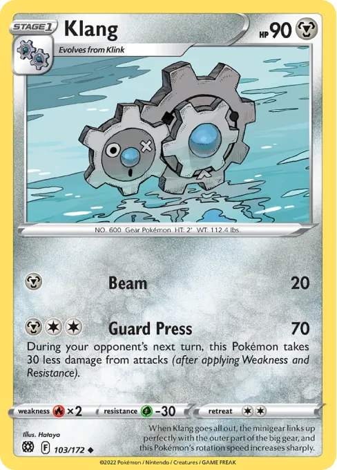 When Klang goes all out, the minigear links up perfectly with the outer part of the big gear, and this Pokémon's rotation speed increases sharply.