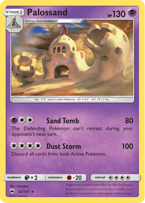 Possessed people controlled by this Pokémon transformed its sand mound into a castle. As it evolved, its power to curse grew ever stronger.