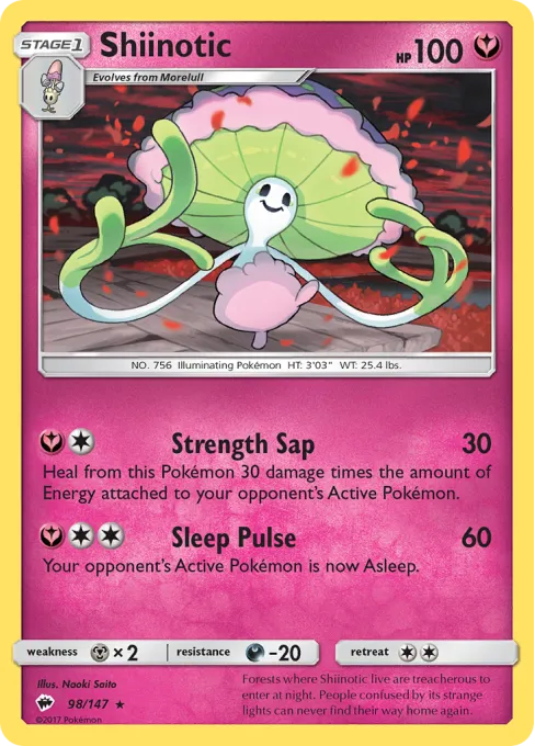 Forests where Shiinotic live are treacherous to enter at night. People confused by its strange lights can never find their way home again.