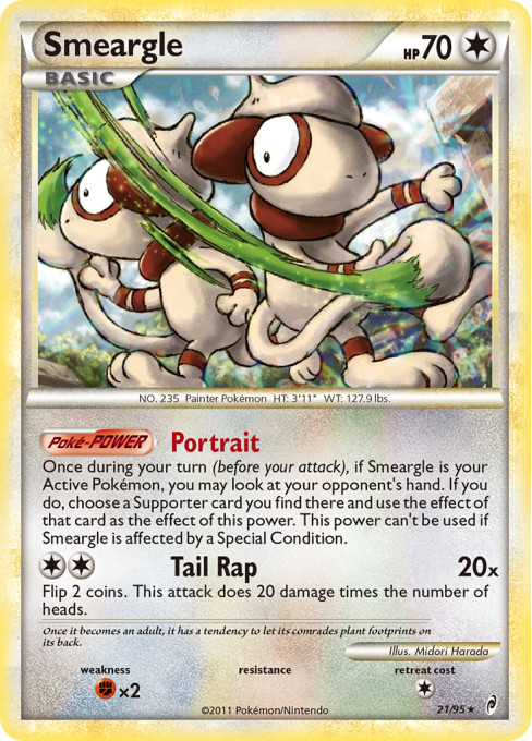 Once during your turn (before your attack), if Smeargle is your Active Pokémon, you may look at your opponent's hand. If you do, choose a Supporter card you find there and use the effect of that card as the effect of this power. This power can't be used if Smeargle is affected by a Special Condition.