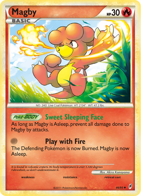 The Defending Pokémon is now Burned. Magby is now Asleep.
