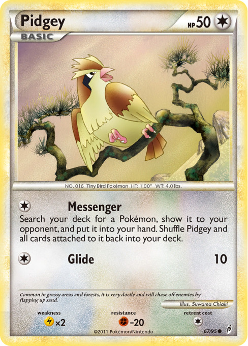 Search your deck for a Pokémon, show it to your opponent, and put it into your hand. Shuffle Pidgey and all cards attached to it back into your deck.