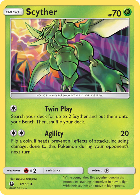 Search your deck for up to 2 Scyther and put them onto your Bench. Then, shuffle your deck.