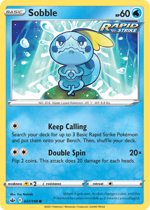 When it gets wet, its skin changes color, and this Pokémon becomes invisible as if it were camouflaged.