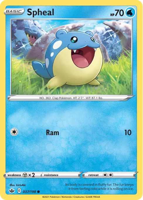Its body is covered in fluffy fur. The fur keeps it from feeling cold while it is rolling on ice.