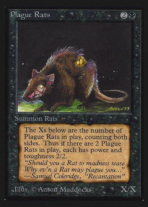 Plague Rats's power and toughness are each equal to the number of creatures named Plague Rats on the battlefield.
