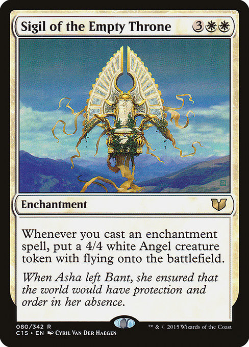 Whenever you cast an enchantment spell, create a 4/4 white Angel creature token with flying.