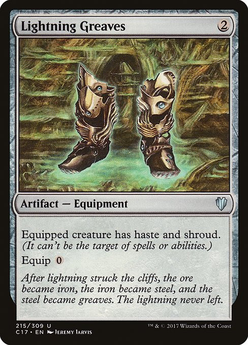 "After lightning struck the cliffs, the ore became iron, the iron became steel, and the steel became greaves. The lightning never left."
