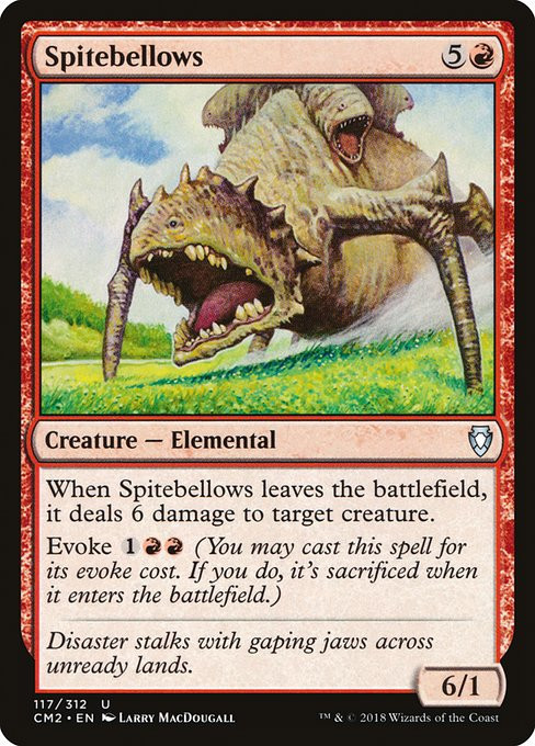 When Spitebellows leaves the battlefield, it deals 6 damage to target creature.