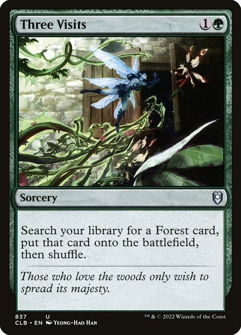 Search your library for a Forest card, put it onto the battlefield, then shuffle.