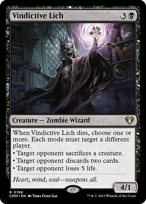 When Vindictive Lich dies, choose one or more. Each mode must target a different player.