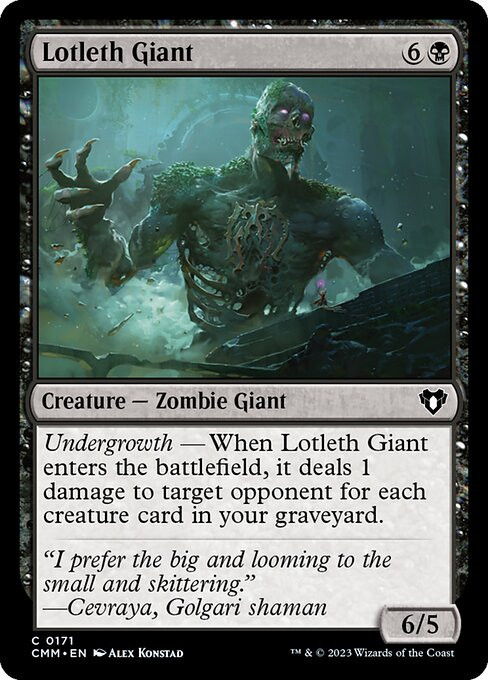 Undergrowth — When Lotleth Giant enters, it deals 1 damage to target opponent for each creature card in your graveyard.