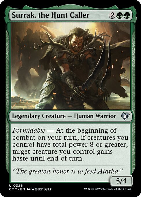 At the beginning of combat on your turn, if creatures you control have total power 8 or greater, target creature you control gains haste until end of turn. (It can attack and no matter when it came under your control.)