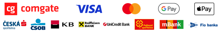 Nejrychlejší způsob zaplacení online. Do rozhraní platební brány ComGate zadáte číslo karty, datum platnosti a CVC kód – tři čísla, která najdete v podpisovém proužku na zadní straně karty. Vše je zabezpečeno standardem 3D Secure, a tak budete nejspíš požádáni o zadání číselného kódu, který obdržíte SMSkou od své banky. Po dokončení platby budete přesměrováni zpět do obchodu. Platba je potvrzena okamžitě a my budeme bez odkladu pokračovat v realizaci objednávky.
