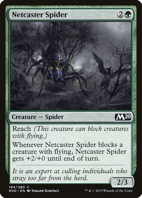 Whenever Netcaster Spider blocks a creature with flying, Netcaster Spider gets +2/+0 until end of turn.