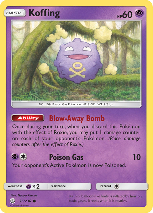 Once during your turn, when you discard this Pokémon with the effect of Roxie, you may put 1 damage counter on each of your opponent's Pokémon. (Place damage counters after the effect of Roxie.)
