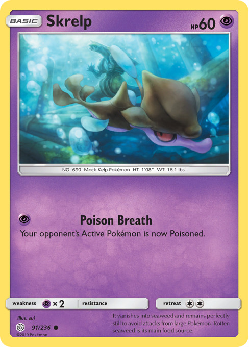 It vanishes into seaweed and remains perfectly still to avoid attacks from large Pokémon. Rotten seaweed is its main food source.