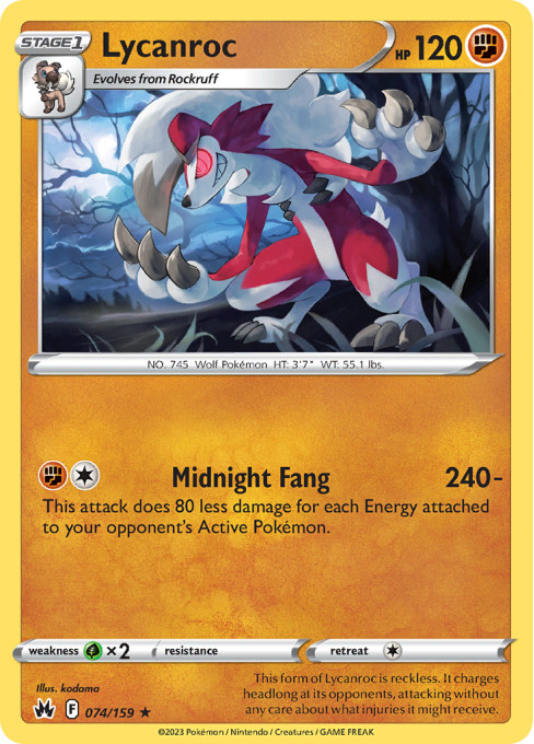 This form of Lycanroc is reckless. It charges headlong at its opponents, attacking without any care about what injuries it might receive.