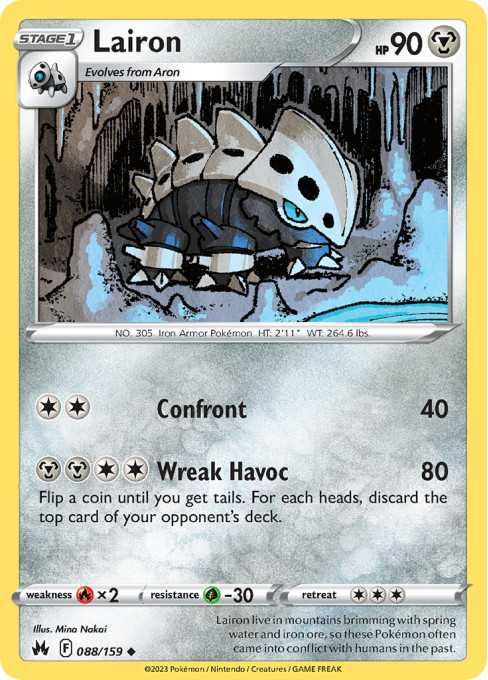 Lairon live in mountains brimming with spring water and iron ore, so these Pokémon often came into conflict with humans in the past.