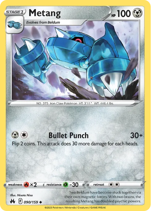 Two Beldum have become stuck together via their own magnetic forces. With two brains, the resulting Metang has doubled psychic powers.