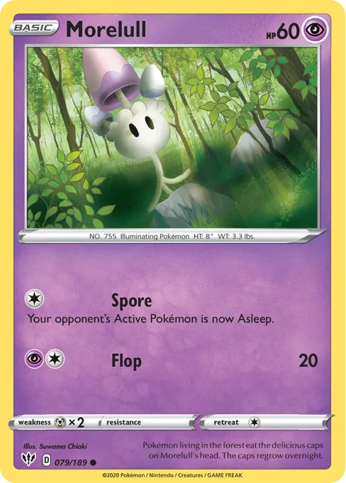 Pokémon living in the forest eat the delicious caps on Morelull's head. The caps regrow overnight.