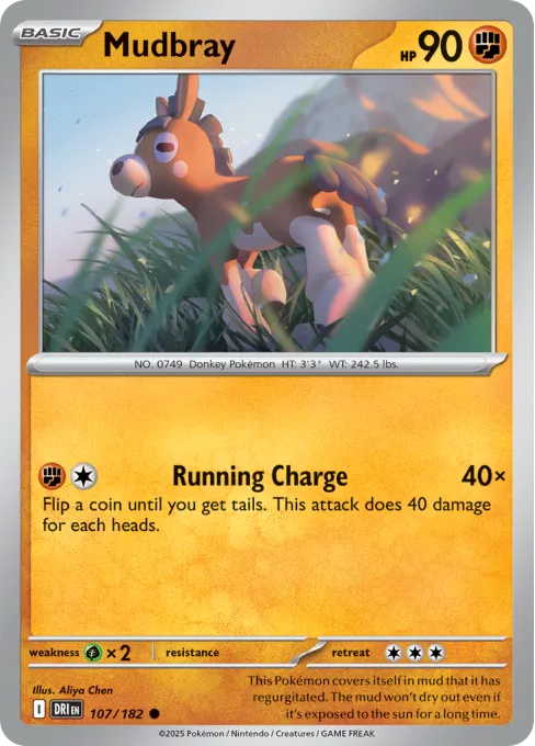 This Pokémon covers itself in mud that it has regurgitated. The mud won't dry out even if it's exposed to the sun for a long time.