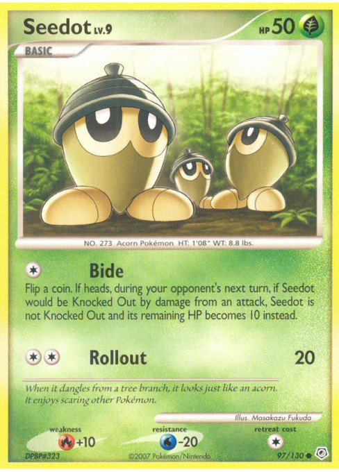 Flip a coin. If heads, during your opponent's next turn, if Seedot would be Knocked Out by damage from an attack, Seedot is not Knocked Out and its remaining HP becomes 10 instead.