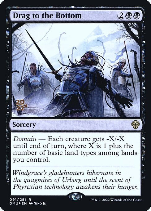Domain — Each creature gets -X/-X until end of turn, where X is 1 plus the number of basic land types among lands you control.