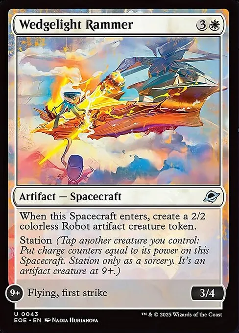 Station (Tap another creature you control: Put charge counters equal to its power on this Spacecraft. Station only as a sorcery. It's an artifact creature at 9+.)