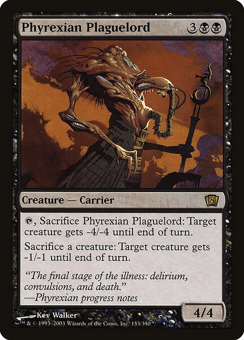 , Sacrifice Phyrexian Plaguelord: Target creature gets -4/-4 until end of turn.