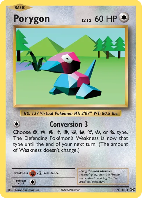 Choose Grass, Fire, Water, Lightning, Psychic, Fighting, Darkness, Metal, Fairy, or Dragon type. The Defending Pokémon's Weakness is now that type until the end of your next turn. (The amount of Weakness doesn't change.)